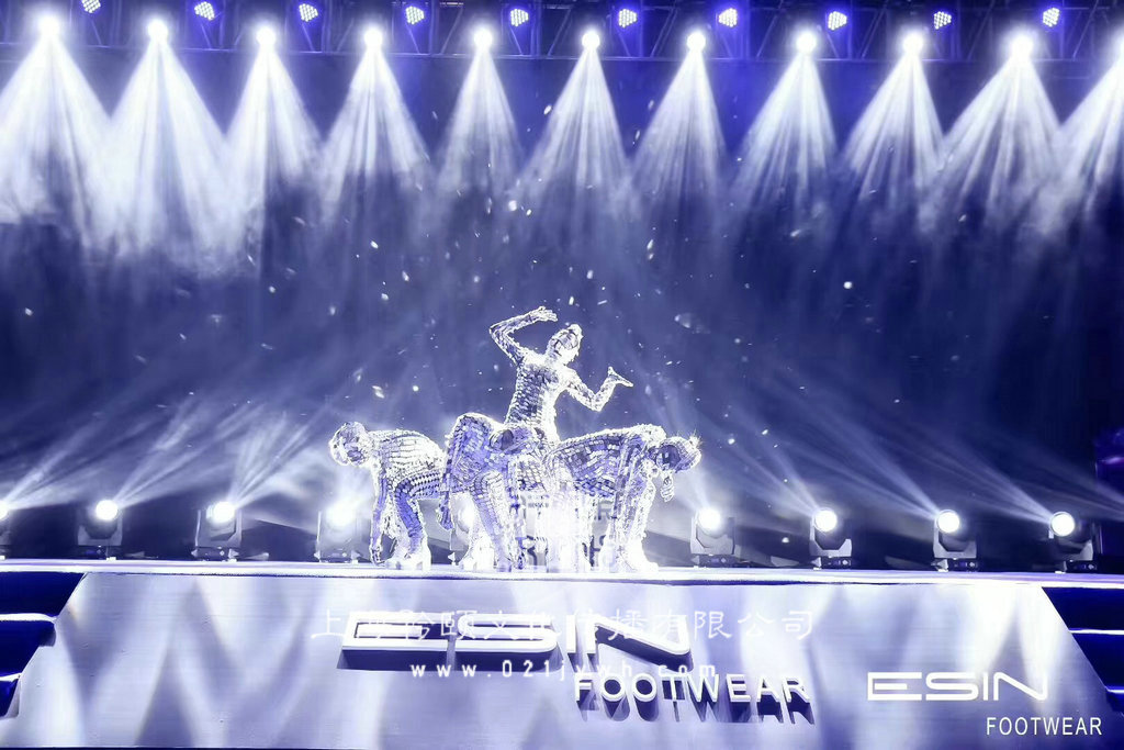 鏡面舞表演,由藝人身穿上全身會放光的小鏡片做的演出服,可以做人體雕塑靜態展示,也可以配合炫酷的舞臺燈光做舞蹈表演,炫酷外形不管走到哪都是最亮的那個。